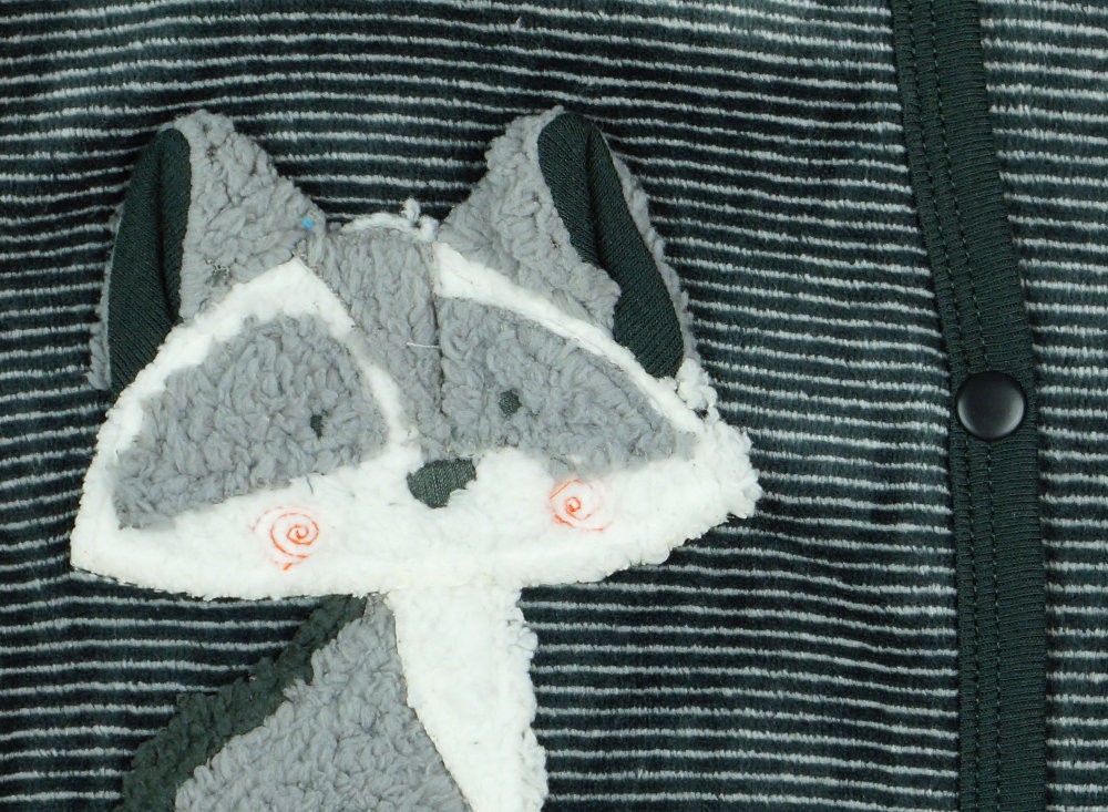 Elöl végig patentos, hód hímzéssel díszített, hosszú ujjú plüss rugdalózó, talpán csúszásgátlóval