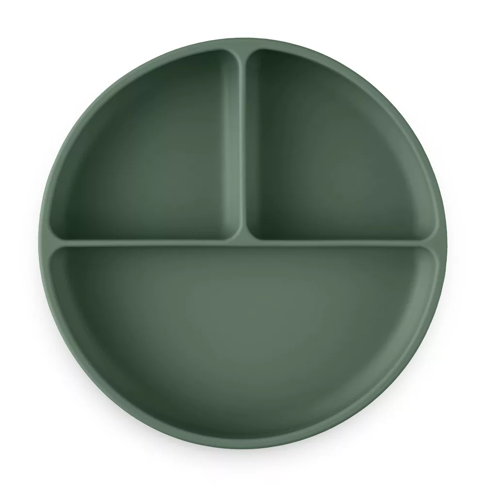 PETITE&MARS Szilikon osztott tányér, kerek Take&Match Misty Green 6m+
