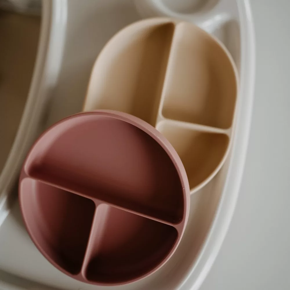 PETITE&MARS Szilikon osztott tányér, kerek Take&Match Desert Sand 6m+