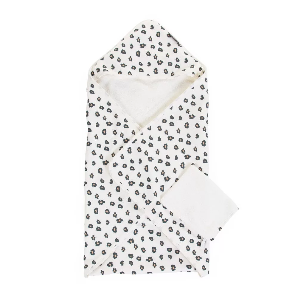 Childhome Fürdőlepedő + arctörlő- 80x80 cm - Leopárd mintás