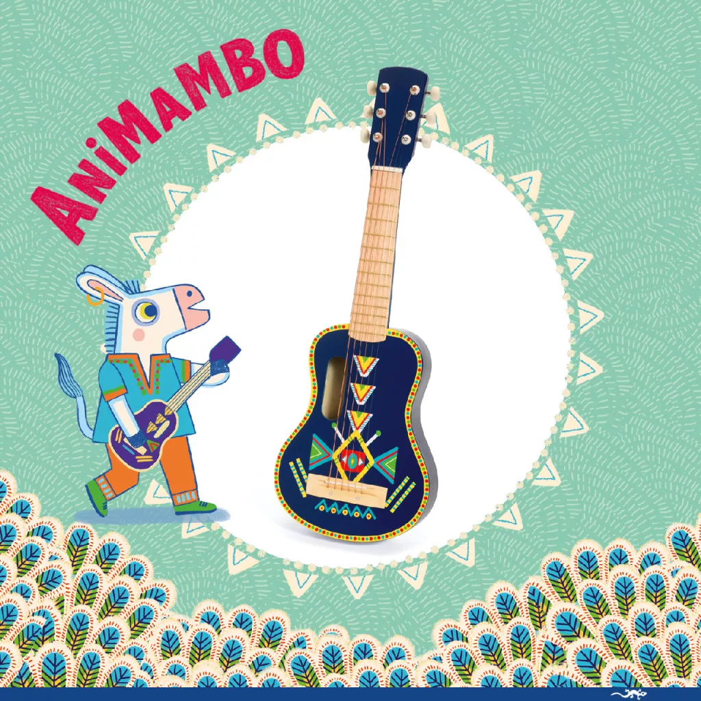 Játékhangszer, gitár a Djeco-tól Djeco Animambo játékhangszer sorozatában.