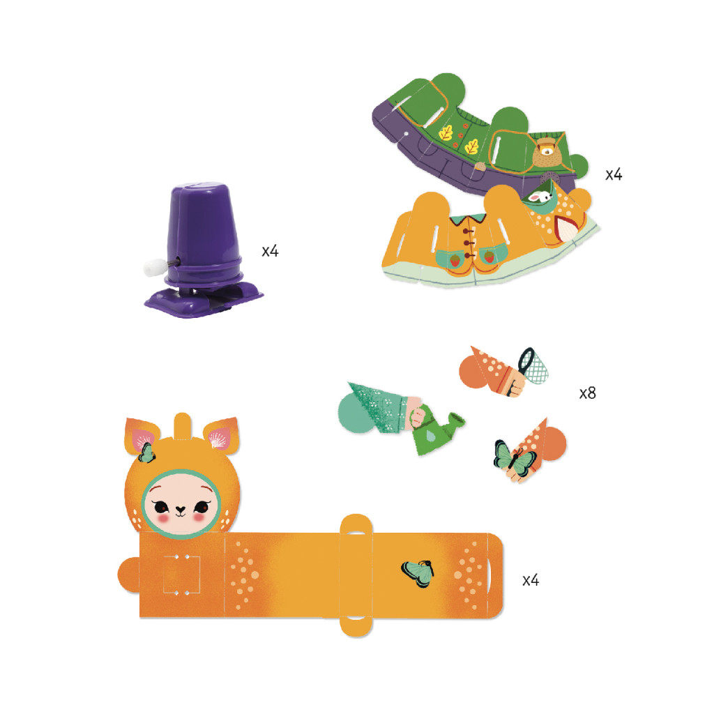 Készítsd el saját erdei figuráidat! Ebben a Djeco készletben mindent megtalálsz hozzá. A készletből négy lépegető erdei bábu figura készíthető.