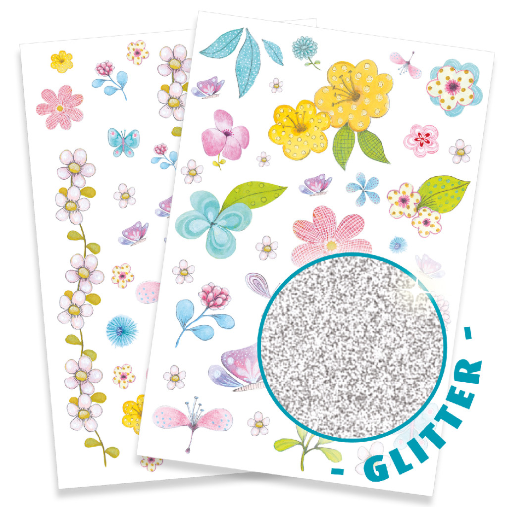 Bőrgyógyászatilag tesztelt ideiglenes tetováló matricák már 3 éves kortól. A visszafogott, lágy színekben megalkotott virágos - lepkés tetoválások egy kis víz segítségével könnyen felhelyezhetőek a kis karokra, kezekre. Eltávolítása szappanos vízzel vagy pici sminklemosó használatával ajánlott.
