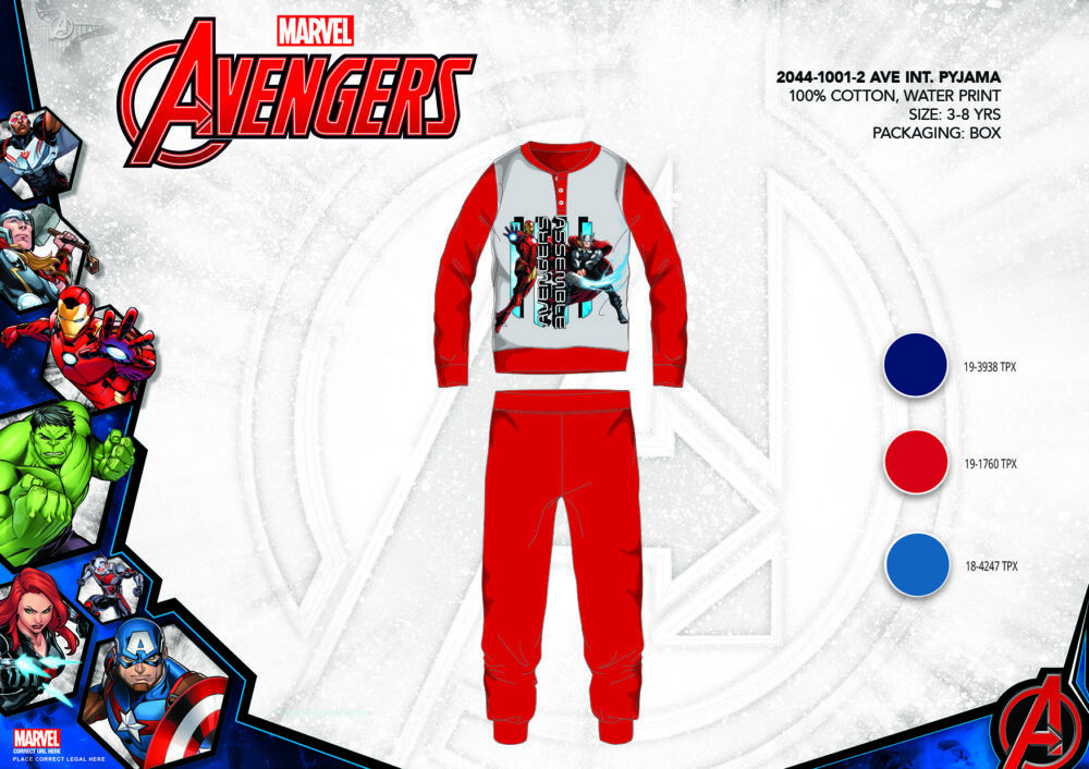 Téli pamut interlock gyerek pizsama - Bosszúállók - piros - 134