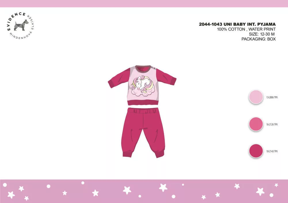 Téli pamut interlock baba pizsama - Unikornis - pink - 80