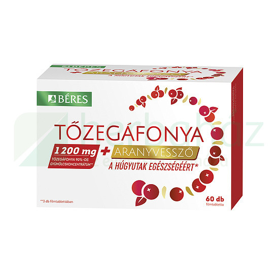 Béres Tőzegáfonya + Aranyvessző filmtabletta, tőzegáfonya koncentrátumot és aranyvessző kivonatot tartalmazó étrend-kiegészítő készítmény.