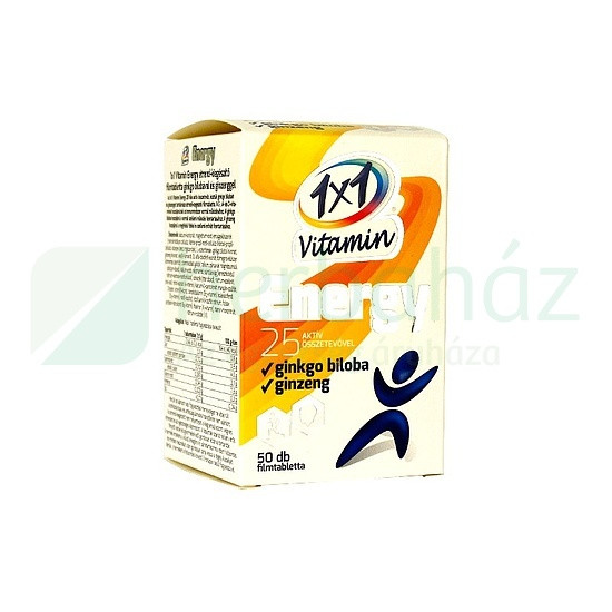 Az 1x1 Vitamin Energy 25 féle aktív összetevőt, köztük ginkgo bilobát és ginzenget tartalmazó étrend-kiegészítő filmtabletta.