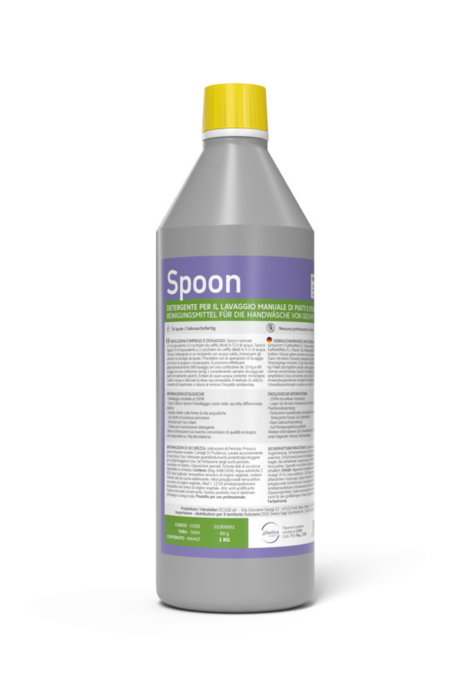 A SPOON egy habzó folyékony mosogatószer, amely eltávolítja még a legmakacsabb zsírt és szennyeződéseket is a tányérokról, edényekről és poharakról. Már alacsony dózisban is hatékonyan tisztít, miközben kíméli a környezetet. Hozzáadott illatanyagok nélkül.