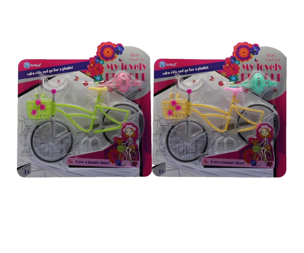 Bicikli Barbie-hoz kosárral, tárolóval és bukósisakkal.