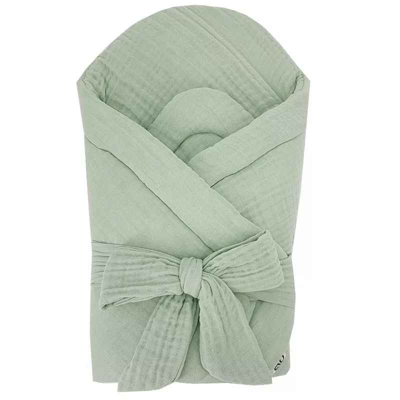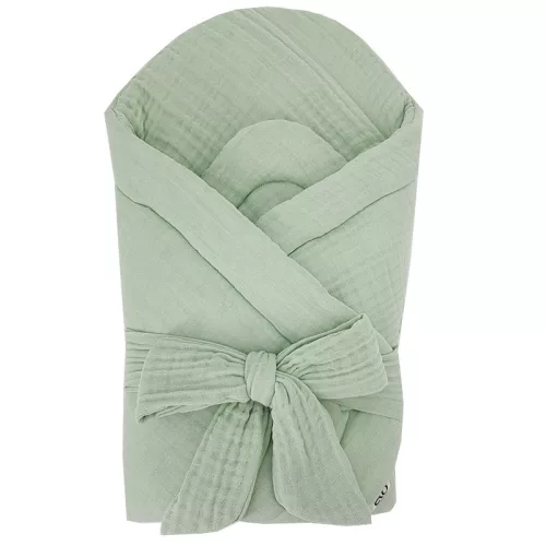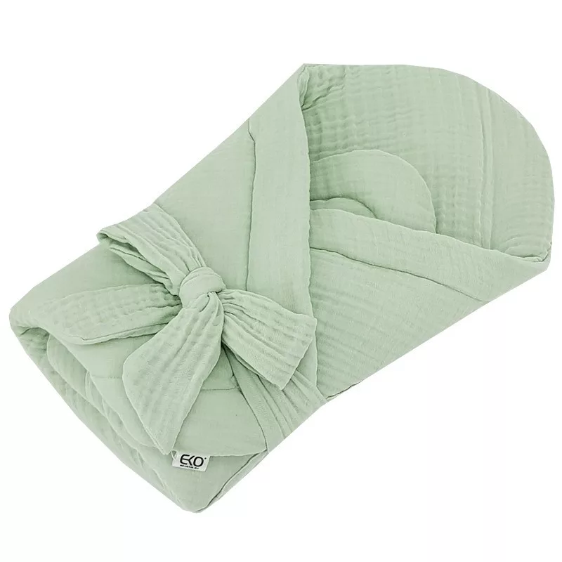 EKO Muszlin pólya kókusz kivehető betéttel és masnival Mentol 75x75 cm