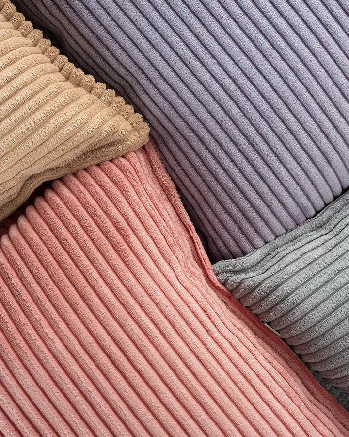 Minőségi anyaghasználat – OEKO-TEX® és GRS® tanúsítvánnyal rendelkező széles bordás kordbársony, újrahasznosított PET palackokból, 100% poliészter.