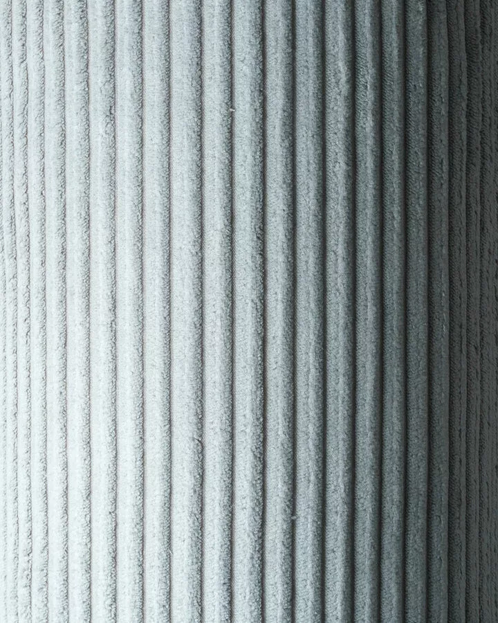 Minőségi anyaghasználat – OEKO-TEX® és GRS® tanúsítvánnyal rendelkező, újrahasznosított PET palackokból készült széles bordás kordbársony huzat.