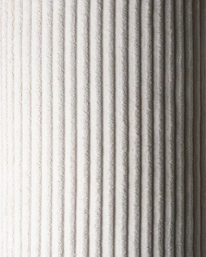 Prémium anyaghasználat – OEKO-TEX® és GRS® tanúsítvánnyal rendelkező széles bordás kordbársony, újrahasznosított PET palackokból.