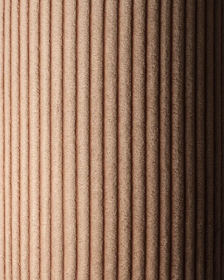 Fenntartható anyagok – OEKO-TEX® és GRS® tanúsítvánnyal rendelkező, újrahasznosított PET palackokból készült széles bordás kordbársony borítás.