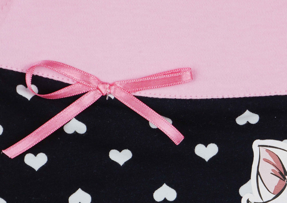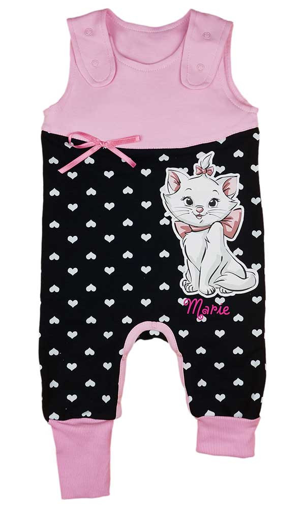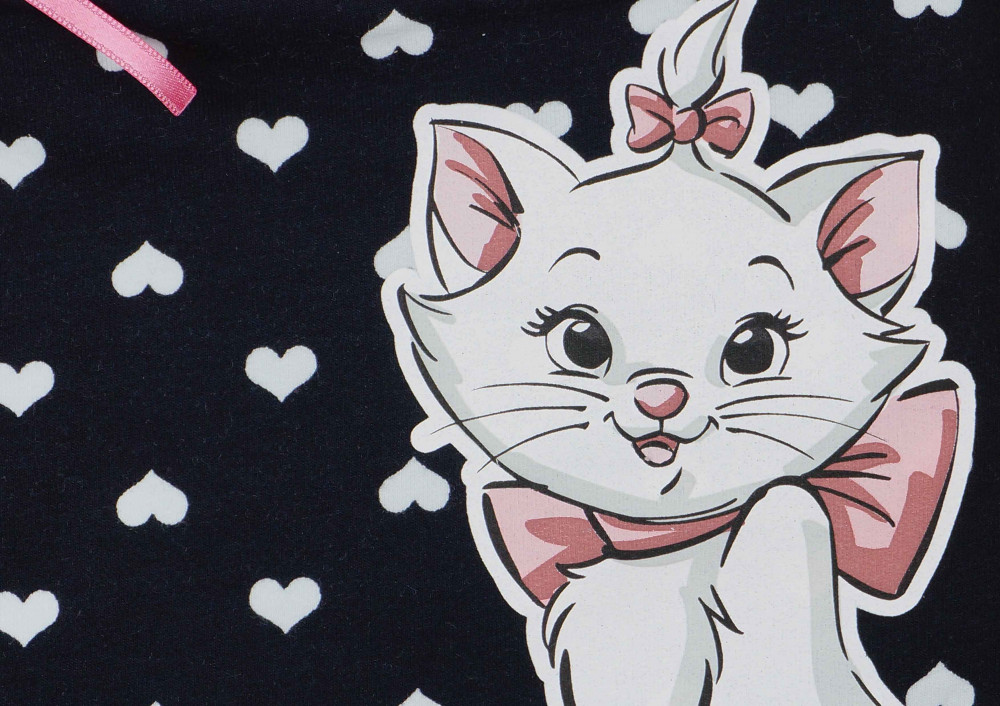Ujjatlan lábfej nélküli baba rugdalózó Marie cica mintával rózsaszín és sötétkék színben